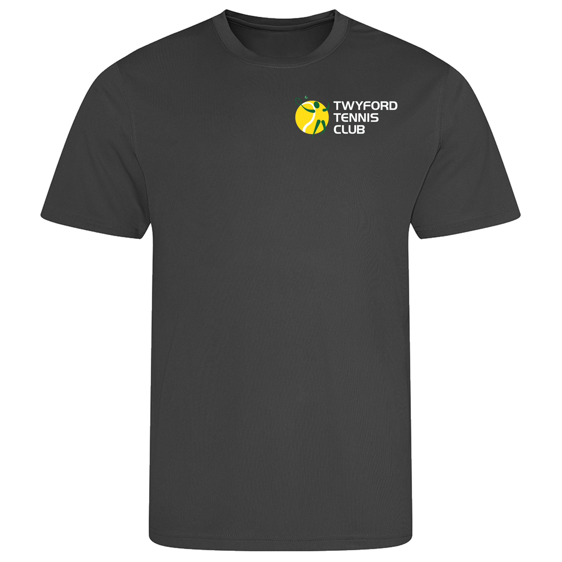 Twyford Tennis Club Branded Polyester Sports T-Shirt with club logo on left chest area.